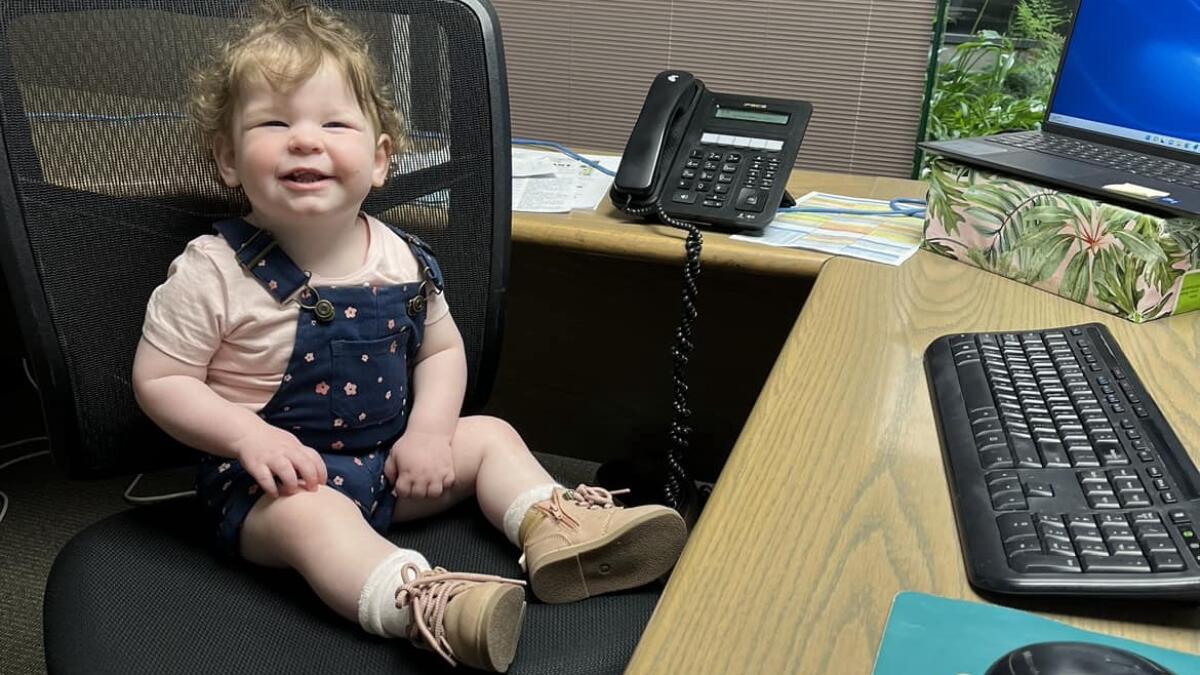 Bonnie Maher, 17 months, paid the office a visit last week to make sure everything was in good working order.