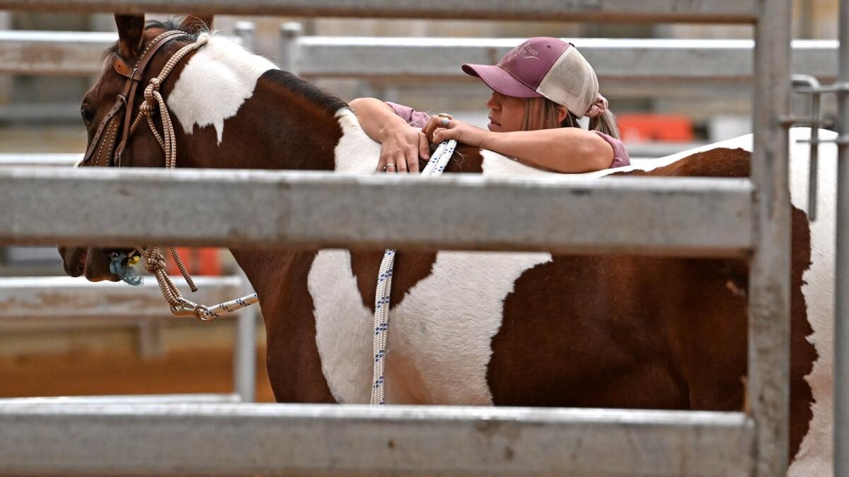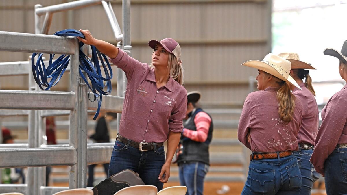 Bailee Pavlou helping Shannon Elyce in the colt start competition.
