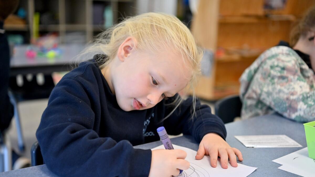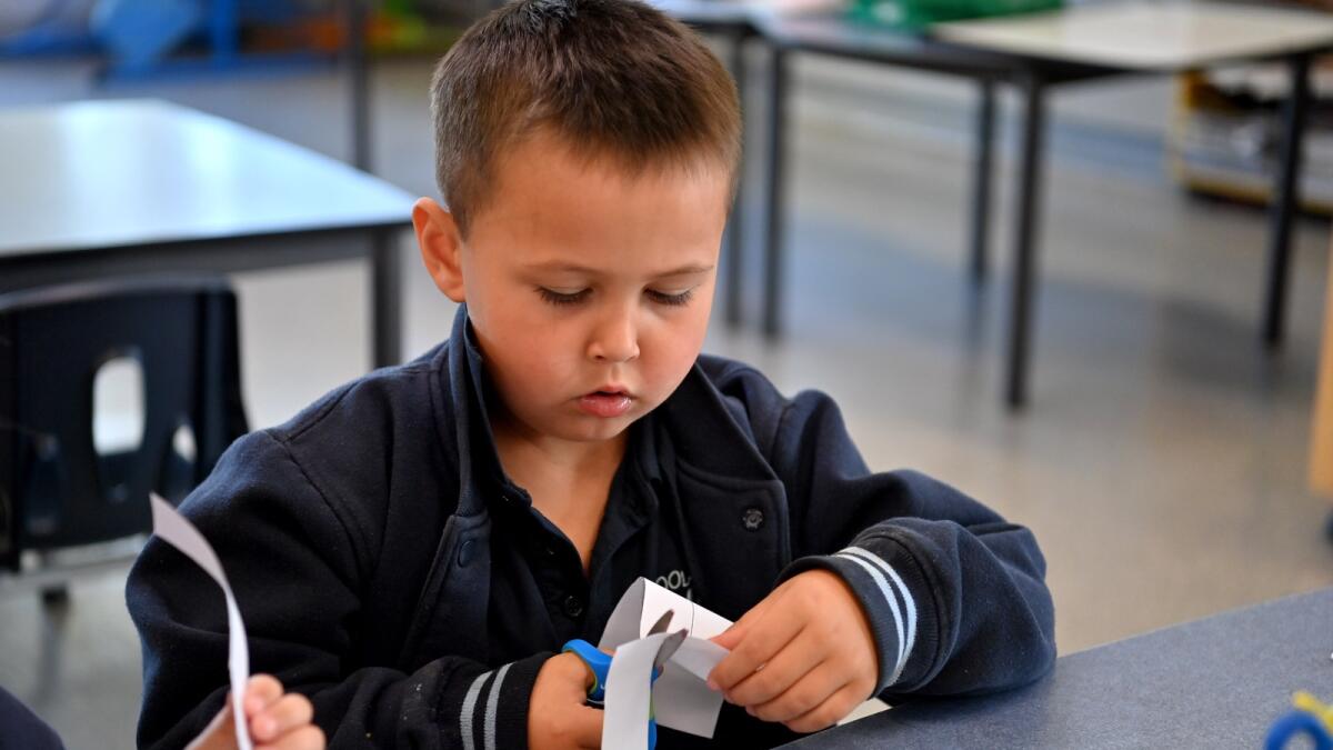 Snip, snip, hooray: Hunter Van der Zwann, 5, learning fine motor skills.