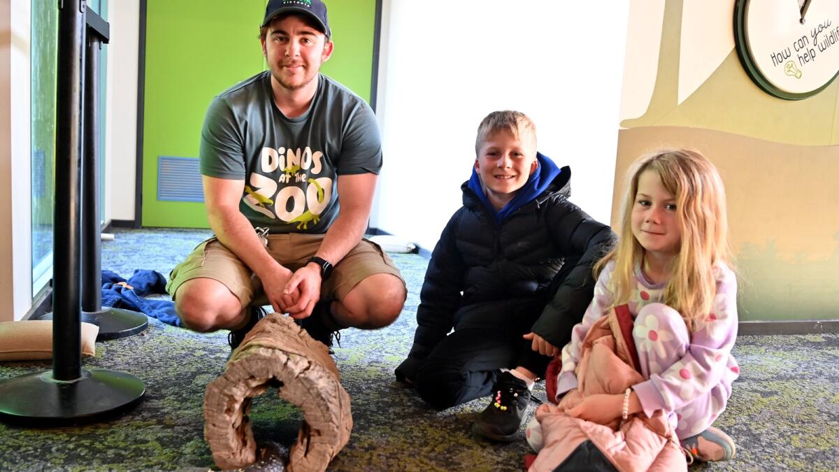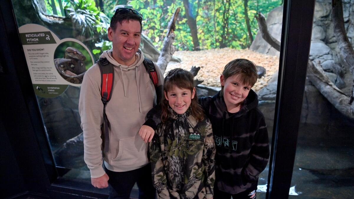 Reptile Keeper Ambrose Burcher with siblings Louis, 9, and Leah French, 6.