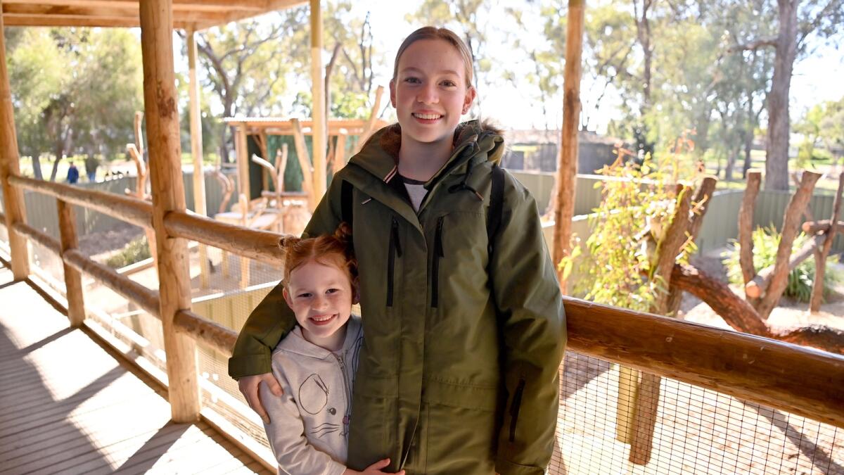 Sisters Kiara, 5, and Danikah Spencer, 13, visiting the koalas.