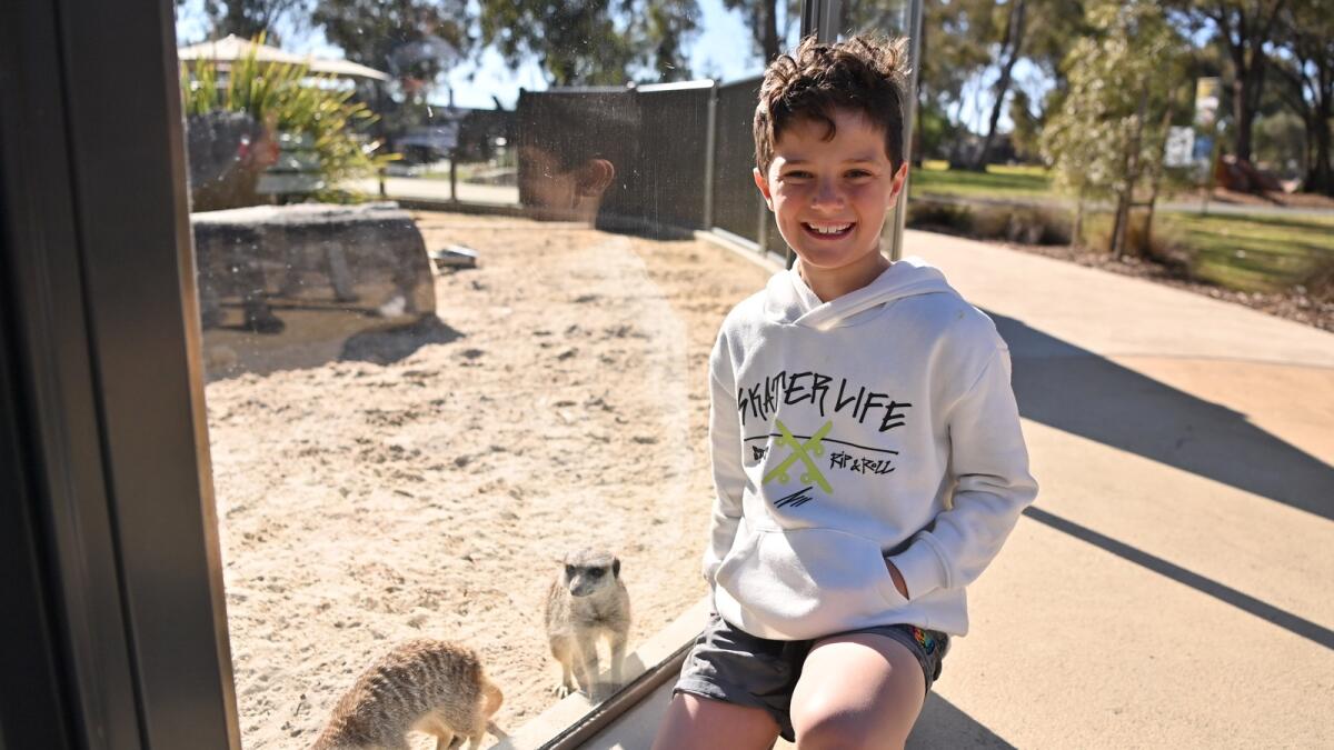 Tom Hayes, 8, visiting the meerkat exhibit.