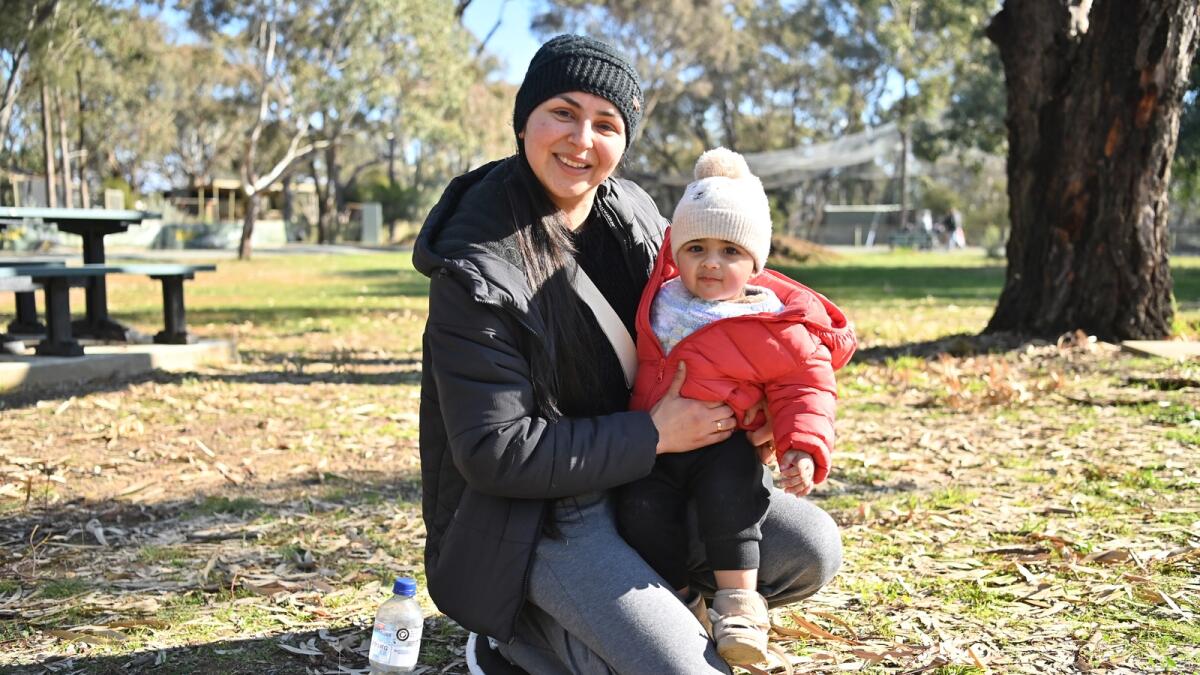 Prabh Kaur and her daughter Avnoor Kang, 1, at the Kyabram Fauna Park.