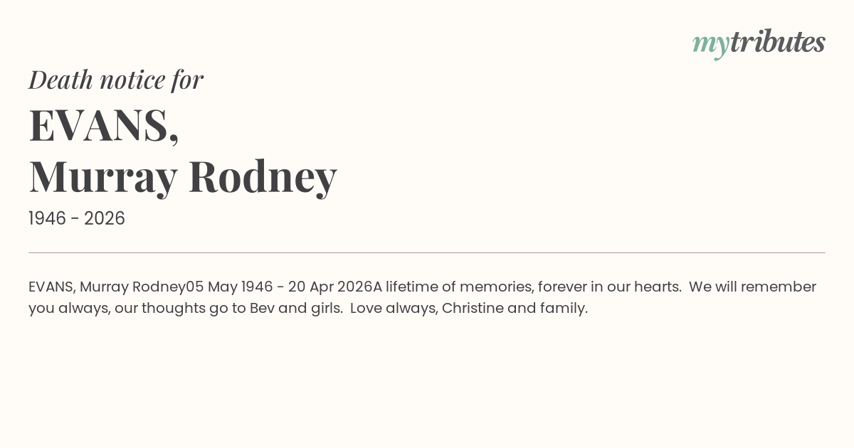 We will remember you always, our thoughts go to Bev and girls. Love always, Christine and family.