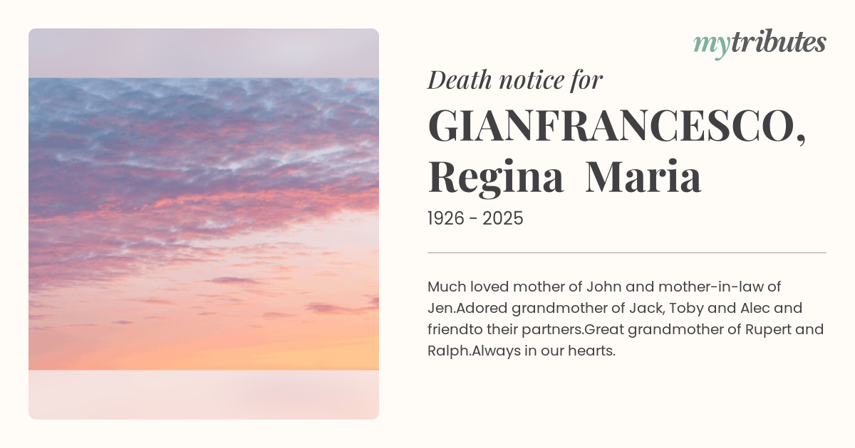 17°CMuch loved mother of John and mother-in-law of Jen.