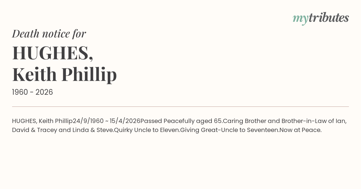 Caring Brother and Brother-in-Law of Ian, David & Tracey and Linda & Steve.