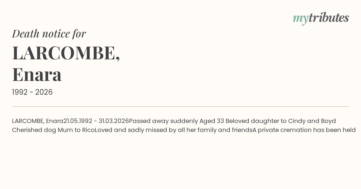 Passed away suddenly Aged 33