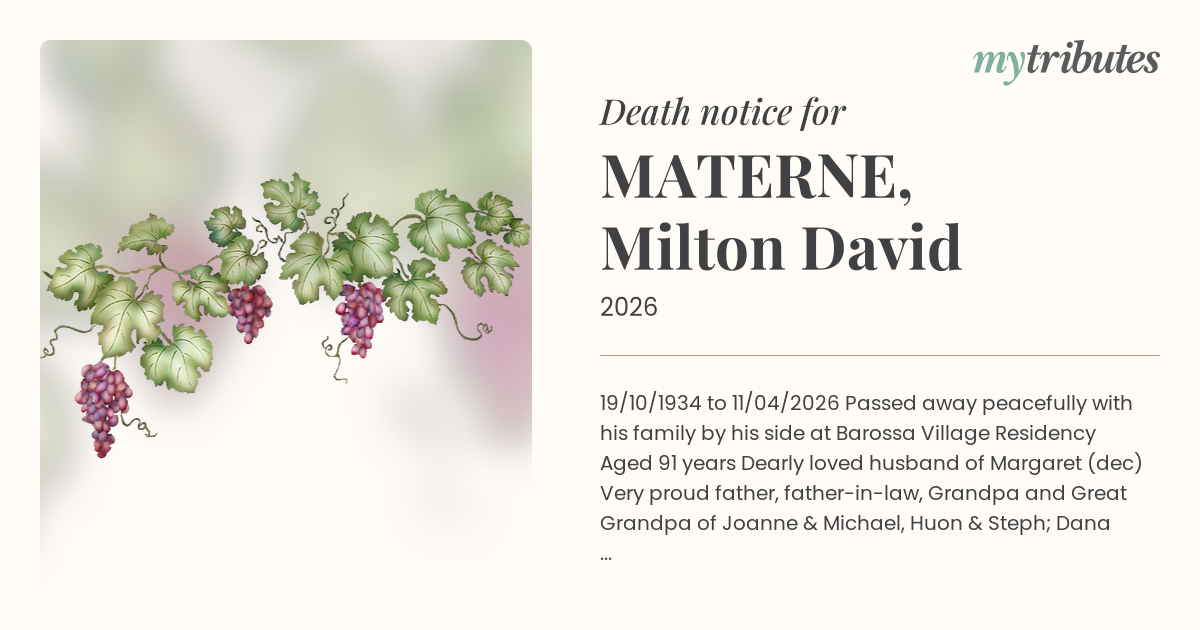 Passed away peacefully with his family by his side at Barossa Village Residency
