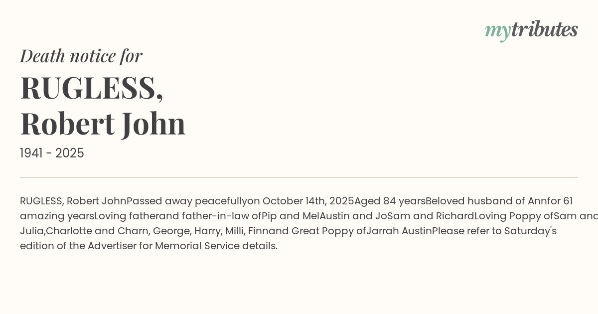 of the Advertiser for Memorial Service details.