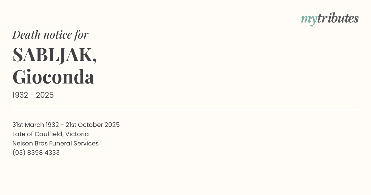 Late of Caulfield, Victoria