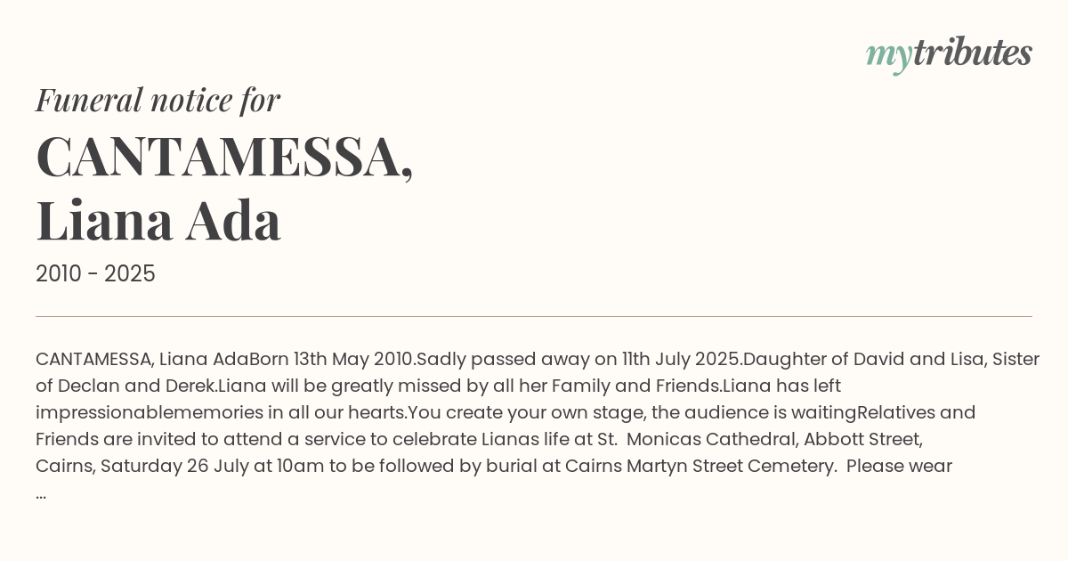 Relatives and Friends are invited to attend a service to celebrate Liana’s life at