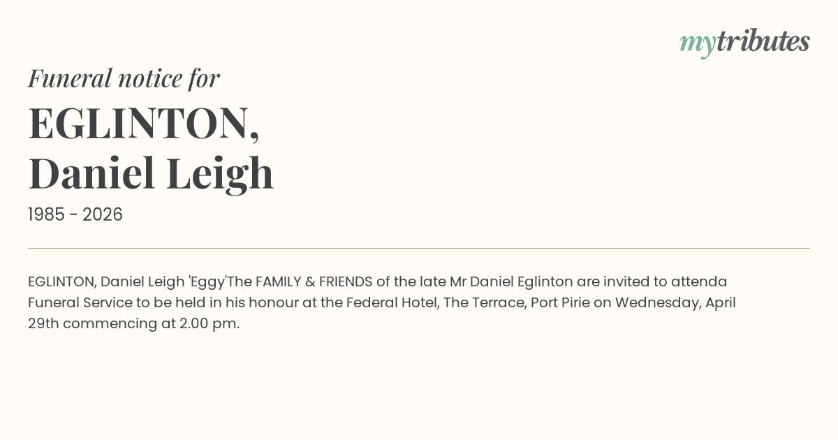 The FAMILY & FRIENDS of the late Mr Daniel Eglinton are invited to attend
