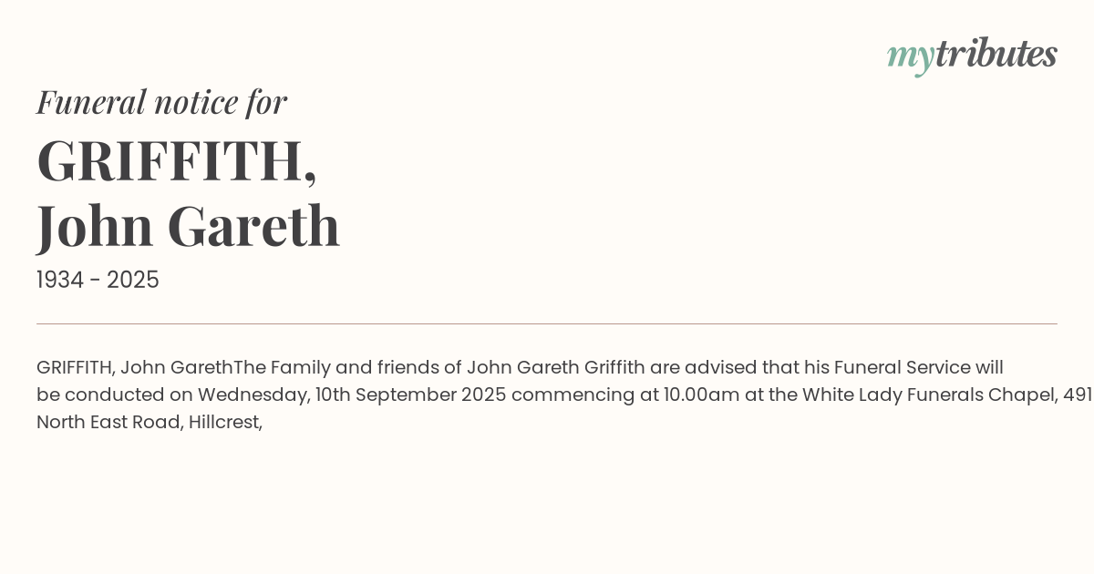 will be conducted on Wednesday, 10th September 2025 commencing at 10.00am at the White Lady Funerals Chapel,