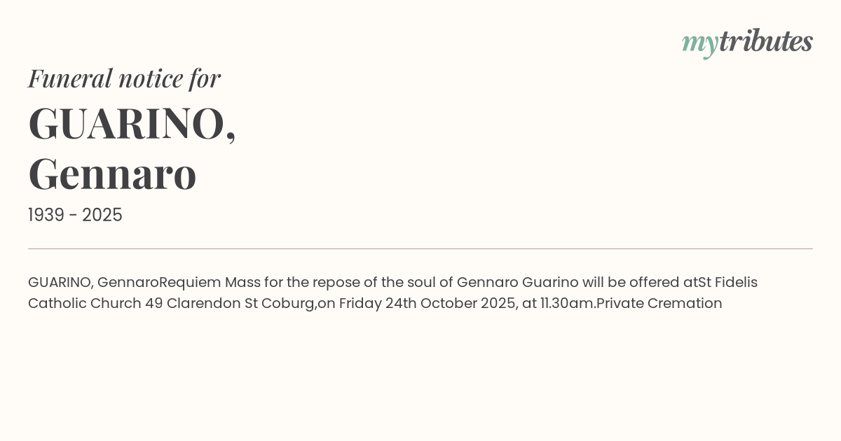 Requiem Mass for the repose of the soul of Gennaro Guarino