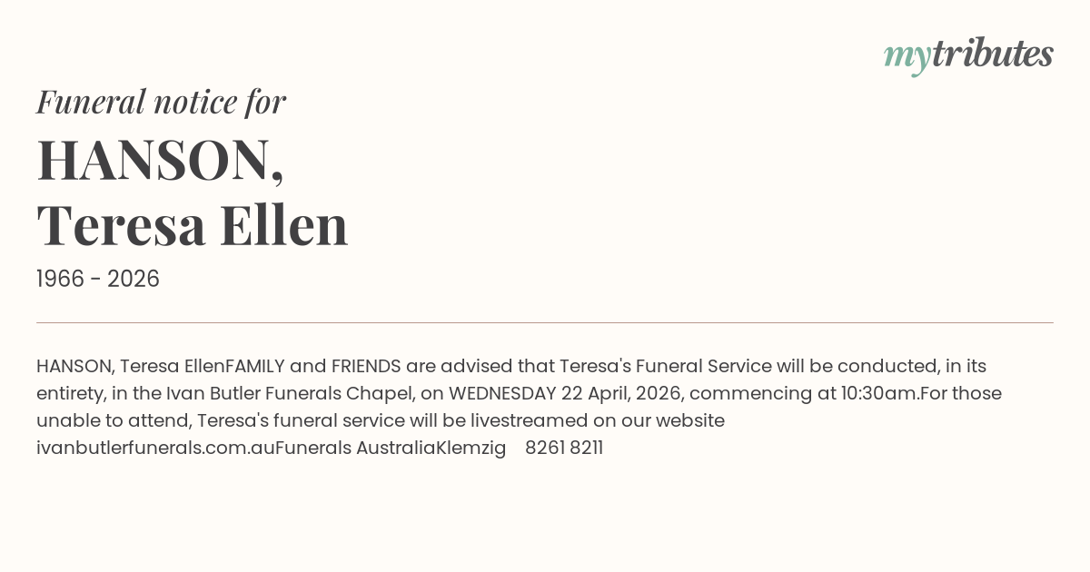 For those unable to attend, Teresa's funeral service will be livestreamed on our website