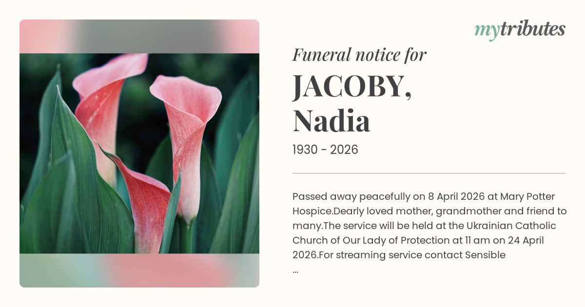 The service will be held at the Ukrainian Catholic Church of Our Lady of Protection at 11 am on 24 April 2026.