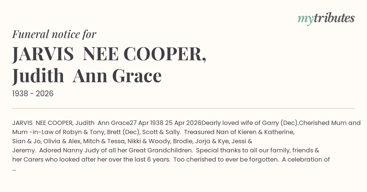 17°CJARVIS NEE COOPER, Judith Ann Grace