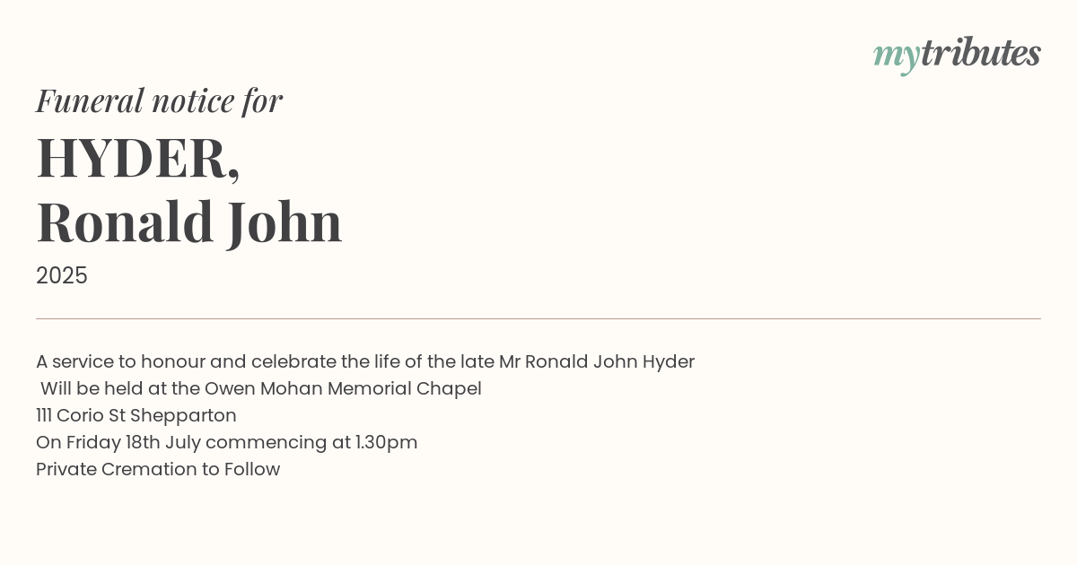 17°CA service to honour and celebrate the life of the late Mr Ronald John Hyder